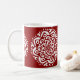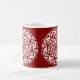 Ce mandala blanc est assis sur un arrière - plan rouge foncé. La couleur est profonde et chaude. Partie de la collection Kylgh Mandala.