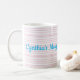 Cette nouvelle reprise du motif à rayures horizontales est douce et simple. Des rayures roses et blanches constituées de carrés roses alignés formant des rayures ! Le design rose doux et délicat laisse place à votre nom ou à celui des destinataires. Actuellement en bleu, typographie manuscrite avec ombre portée blanche. Les couleurs et la police peuvent être personnalisées. Un cadeau attentionné d'un être humain chaleureux.