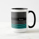 Une tasse de très bon goût de la mode des hommes avec la sarcelle d'hiver fraîche et rayures noires sur du motif rayé noir et gris inférieur et à la mode sur le reste du cas. Personnalisez en ajoutant votre nom à cette tasse moderne de style contemporain.