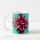 This vibrant painting of a shiny red and pink gift bow pops against a turquoise and coral background, capturing the excitement of giving in a bold, expressive style. With angular highlights and festive energy, this design is perfect for holiday cards, gift-themed products, and cheerful seasonal decor.
