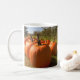 Photographie de citrouilles placés sur l'herbe dans une ferme citrouille.