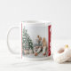 Mangez, buvez et soyez joyeux ! Célébrez Noël avec cette tasse photo collage. Il présente des lettres rustiques sur un arrière - plan rouge. Personnalisez en ajoutant des photos et des noms. Cette tasse de collage photo sera parfait comme cadeau de Noël.