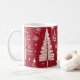 Celebrate the season with this festive coffee mug featuring a bold red background and a variety of stylized white Christmas trees and snowflakes. The modern, hand-drawn look adds a playful yet elegant touch to your holiday mornings. Perfect for sipping cocoa or gifting to Christmas lovers.