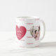 Upgrade your daily coffee ritual with our Two Heart Photo + Name Watermark Love Mug. This elegant mug design features two heart-shaped photo frames on either side, a central red heart as a focal point, and a name artistically integrated as a watermark pattern across the entire mug. With its romantic design that doesn’t explicitly reference Valentine’s Day, this mug is perfect for everyday use, anniversaries, love gifts — or just because.