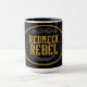 Tasse à café cool pour ceux qui vivent la vie Redneck. Le texte "Redneck Rebel" avec le style de tatouage tribal fleurit sur arrière - plan noir