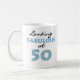 Le texte noir et bleu-clair qui lit "regarder fabuleux 50" sur les 50 T-shirts fabuleux, les tasses, les mousepads, les boutons, et d'autres articles qui font de grands cadeaux pour la personne tournant 50 années, et elles peuvent être portés l'année entière !
