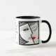 La peinture numérique originale de Leslie Sigal Javorek sur cette tasse en céramique est une illusion d'optique inspirée de l'Art Déco en l'honneur de Janus, le dieu romain des portes et des portes, des débuts et des fins, de la guerre et de la paix, et des transitions significatives. L'image est imprimée de part et d'autre (pour le plaisir des droitiers ET des gauchers !) avec du texte personnalisable au centre.