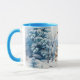 Ce charmant design présente un renne mignon dans un foulard bleu-gris devant un pays des merveilles hivernales, avec des arbres de Noël enneigés décorés, une maison de fête confortable et un étang. Le nom de votre destinataire ou de votre destinataire apparaît dans un rouge foncé marron) au milieu de la tasse (face à la poignée par rapport aux deux côtés).Assurez-vous de taper le nom que vous voulez dans la section Personnaliser. Ce design est montré sur une tasse combinée avec un bleu ciel - presque un turquoise - poignées et tasse à l'intérieur, mais beaucoup d'autres options sont disponibles, à la fois sobre et fantaisie.