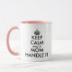 Restez calme et laissez maman s'en occuper drôle Mère's Day Coffee Mug. Faites votre propre drôle Gardez le calme et continuez votre parodie pour les femmes. Modèle de typographie moderne avec couronne. Impression recto verso. Coupe couleur combo avec poignée rose et intérieur. Conception personnalisée avec texte et couronne dans n'importe quelle couleur.