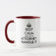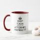 Restez calme et laissez un avocat s'en occuper drôle de cadeau de tasse de café. Créez votre propre devis humoristique Keep Calm and Carry On. Modèle de typographie moderne avec couronne. Des tasses personnalisées amusantes pour la maison ou le bureau. Ajoutez votre propre texte personnalisé. Idée cadeau spécial d'anniversaire ou de Noël pour avocat, avocat, avocat, conseiller, avocat, conseiller juridique, avocat, avocat, notaire, notaire, patron, amis, famille, collègue, collègue, employés, employés, employés d'entreprise, personnel, professionnel, expert, etc. Manche rouge et à l'intérieur. Impression recto verso. L'humour de bureau lui présente des cadeaux.