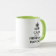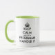 Restez calme et laissez un nouveau-né le manipuler drôle café Mug. Créez votre propre devis Garder le calme et continuer sur. Modèle de typographie moderne avec couronne. Des tasses personnalisées amusantes pour les diplômés du secondaire et les étudiants du collège. Ajoutez votre propre texte personnalisé. Impression recto verso avec poignée colorée.