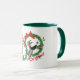 Tasse faite sur commande de cadeau de rétro de Noël guirlande adorable de caniches. Deux caniches gris/noirs adorables ! Chaque caniche utilise un collier rouge avec une cloche là-dessus, et est encadré avec jolie la conception des textes de guirlande de Noël de houx et de Joyeux Noël. Ajoutez le texte fait sur commande/remettez à la côte l'image si désiré, utilisant votre choix de texte (type y compris, taille, couleur, placement). Entièrement personnalisable.