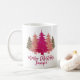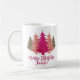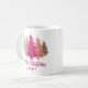 Retro Joyeux Noël Mug café personnalisé avec un nom personnel ou un nom de famille. Le design mignon a trois arbres de Noël parties scintillant avec écriture manuscrite script. Personnaliser avec un nom personnel ou familial. Grand cadeau de Noël pour la famille et les amis.