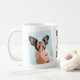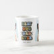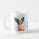 Traitez un chien propriétaire de cette tasse à café rétro cool avec le dicton "BEST DOG DAD EVER" dans une police vintage multicolore 60s, étoiles blanches audacieuses, 2 photos du chien mignon, et leur nom. Cette tasse de photo personnalisée ferait un cadeau de fête des pères parfait ou pour un anniversaire à certains!