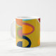 Cette tasse a un design moderne du milieu du siècle de demi ovales dans une palette de couleurs rétro. Coloré, audacieux, amusant !