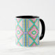 Un design géométrique vibrant et énergique présentant une fusion de bleu bébé doux, de rose bonbon et de vert néon électrique. Ce motif tribal complexe crée un effet kaléidoscopique rythmique à la fois rétro et futuriste. Parfait pour ceux qui veulent ajouter une touche artistique audacieuse, colorée et unique à leurs accessoires quotidiens.