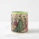 scène féminine du vieux monde en rose et vert. aquarelle vintage des dames victoriennes dans une pièce habillée de robes longues, une robe blanche longue avec des frissons et un grand ruban et arc rose, une longue robe vert émeraude, et d'autres dames. une dame assise et lisant un livre, une avec son dos à nous, et un tableau est sur un chevalet belle oeuvre de couleur douce avec cinq femmes victoriennes. ian vêtements, on dirait que c'est peut-être dans un grand magasin où ils essaient d'acheter des robes de boules parce que certains sont habillés dans des vêtements de tous les jours et en casquette et attendent. image peinte détaillée et délicate qui est féminine. joli art vintage en rouge, vert et beiges. art vintage en rose et vert.