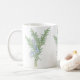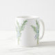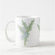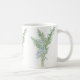Tasse à café en céramique avec une illustration dessinée à la main d'un plante romarin fleuri. Oeuvre : Crayon couleur avec stylo et encre. ©2015 Dominic A. White.