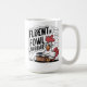 Un coq de dessin animé, portant des lunettes, est assis à un bureau avec des livres, étudiant. Une bulle de discours au-dessus de lui dit Fluent in Fowl Language. Guide des coqs pour la langue de la poule