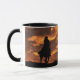 Des cow-boys au coucher du soleil. Deux cow-boys silhouettés dans un coucher de soleil enflammé poursuivant la dernière barre. C'est une grande tasse de café de cowboy occidental du pays.