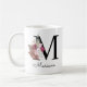 Tasse initiale rose boho monogramme, cadeau de Noël ou d'anniversaire idéal pour une fille, une mère, une tante ou une sœur. Personnalisé avec la lettre monogrammée M et un nom. Autres lettres disponibles dans ma boutique.