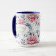 Un hobnail de couronnement américain traditionnel grace les côtés de cette tasse de café sur une impression florale rose et bleue, PAS de texte. Poignée noire et intérieur bleu foncé mais vous pouvez le changer. Achetez comme il semble ou customisez cette tasse. Image stock freepik.com