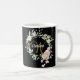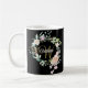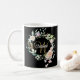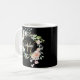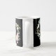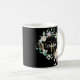Jolie tasse monogramme, avec un joli nom de script blanc avec une initiale en or complaisante qui est encadrée par une délicate guirlande rose florale aquarelle sur un arrière - plan noir. Personnalisez pour créer un cadeau spécial de conservation au trésor! Conçu par Thisisnotme©