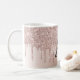 Rose Gold - Ombré Rose Blush Luxe Chic Paillettes qui dégoulinent sur Feuille Métallique Monogramme Nom et Initiale Tasse à Café. La tasse scintillante et féminine fait le cadeau parfait de Noël ou d'anniversaire pour un Sweet 16 pour quelqu'un qui aime le rose gold.