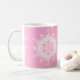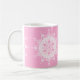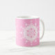 Ce mandala blanc est assis sur un arrière - plan rose clair. La couleur est simple et féminine. Une partie de la collection Fenten Mandala.