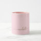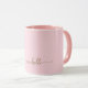 Tasse personnalisée minimaliste rose blush élégante avec monogramme doré et nom en script. Ces créations présentent votre prénom dans un joli style manuscrit avec une typographie à queue en forme de signature en or sur un fond rose bébé ou rose blush clair. Facile à personnaliser. Cadeau féminin élégant pour une pendaison de crémaillère, mais aussi pour un anniversaire, une fête des 16 ans, la fête des mères, un mariage, une douche de mariée, une baby shower, une fête de remise de diplôme et c'est pour la fille qui aime les choses uniques et stylées.