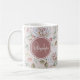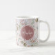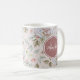 Une élégante tasse beige couleur crème avec un beau motif fleuri de roses rose pâle et crème. Personnalisez en ajoutant votre nom et votre monogramme à l'insigne octagon rose de cendres arrondi. Il fait partie de la collection de Roses de cendres florales de crème beige de la collection.