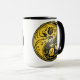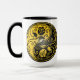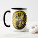 Caractéristiques de conception ce les belles de yin de yang deux ont stylisé les roses tribaux. Les remous jaunes et noirs complexes décorent les deux côtés de ce symbole traditionnel créant un motif sensible. Les deux fleurs découlent du fond de la larme de chaque côté avec le feuille s'élevant des tiges. Ce yang unique de yin fait une conception renversante et élégante de tasse.