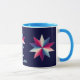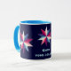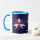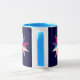 Cette tasse patriotique animée a trois simples motifs de roux, blancs et bleus en forme d'étoile. Le texte dit : Montrez vos couleurs ! Il peut être customisé ou supprimé.