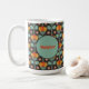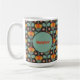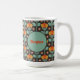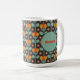 Commencez votre journée avec cette tasse au motif floral de style vintage. Des tulipes géométriques aux tons dorés, rouges et turquoises sont dressées contre un arrière - plan brun foncé pour un look rétro moderne. Il est prêt à être personnalisé avec un nom ou un autre texte de votre choix! Si vous avez besoin d'aide pour coordonner des éléments, envoyez un message à Suzanne par Zazzle ou envoyez un courriel à suzparada@gmail.com.