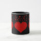 Noir-noir, sobrement élégant, avec des valentines rouges en forme de coeur.