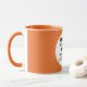 Round ORANGE siongle image frame custom Combo Mug for photo or logo, 11 oz., 3.2" diameter x 3.8" high, with ORANGE background single image frame (one central customizable design area) providing maximum coverage of the mug in ORANGE. See store for more templated font options. The background color has been chosen to closely resemble the combo mug inside and handle color but may not match exactly, due to the difference between printing and enamel tones.