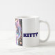 Un design fantaisiste et adorable de tasse à café avec un chat couronné aux yeux bleus étincelants. Les détails complexes et les couleurs vives créent une atmosphère magique et enchanteresse.