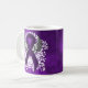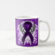 Ruban mauve avec ailes d'ange et filigree. Porter le ruban en février pour la sensibilisation à la dégénérescence maculaire. En avril pour la sensibilisation à la maltraitance animale, la sensibilisation à la sarcoïdose, la sensibilisation au syndrome de Sjogren, le cancer testiculaire. Mai pour la sensibilisation à la fibrose kystique, la sensibilisation à la fibromyalgie, la sensibilisation au lupus. Septembre pour la sensibilisation au TDAH, la sensibilisation au cancer thyroïdien, victimes du 11 septembre - Rubans de sensibilisation du WTC. Novembre pour la sensibilisation à la maladie d'Alzheimer, rubans de sensibilisation à la colite, sensibilisation à la maladie de Crohn, sensibilisation à la violence domestique, sensibilisation à l'épilepsie, sensibilisation à l'itinérance, sensibilisation au cancer du pancréas, sensibilisation à la pancréatite (chronique). Le ruban violet est aussi synonyme de Sensibilisation à la DJA, Sensibilisation à la lutte contre la violence, Sensibilisation à la malformation chez Arnold Chiari, Sensibilisation au leimyosarcome, Sensibilisation aux mucolipidités, Sensibilisation à la Mucopolysaccharidose, Sensibilisation à la non-surveillance des enfants dans la voiture, Sensibilisation à la tolérance religieuse, Sensibilisation aux crimes haineux, intimidation et prévention du suicide.