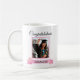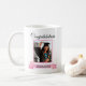 Une belle tasse avec votre photo de graduation dans un cadre rose. En dessous de la photo se trouve un arc rose avec une fleur de cerisier