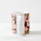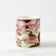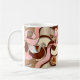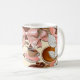 Cette tasse à café présente un design charmant et élégant centré autour d'un thème café. Les oeuvres d'art comprennent une tasse de café vapeur sur une soucoupe, entourée d'arcs roses moelleux, de haricots à café et de tons bruns riches qui évoquent la chaleur et le confort. L'arrière - plan a une base crème qui contraste avec les teintes plus foncées du café. Un monogramme personnalisable avec les initiales "MW" est affiché en évidence dans le centre, ajoutant une touche personnelle. L'esthétique générale est sophistiquée mais cosy, ce qui en fait un cadeau parfait pour les amateurs de café ou un cadeau réfléchi.