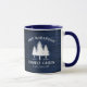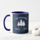 Des tasses à café élégantes et rustiques, avec votre nom et votre "Cabine de famille", Ranch, Cottage ou autre texte, ainsi que sa date et son emplacement établis si vous le souhaitez. Ce design personnalisé et unique présente un texte rustique de style campagnard avec une silhouette blanche de pins sur un imprimé de planches de bois aux couleurs bleues riches. Pour voir d'autres modèles comme celui-ci, n'hésitez pas à visiter ma boutique ici à "Zazzle.com/Rustic_Charm". Merci .