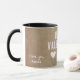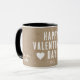 Rustic White Hearts Heureuse Sainte-Valentin Boyfriend Mug. Tasse personnalisée avec typographie moderne et tendance disant Heureuse Sainte-Valentin, coeurs blancs, nom et année. L'arrière - plan est rustique beige vieux papier texture. Ajoutez votre nom et l'année et faites un beau cadeau pour votre petit ami.