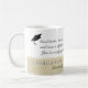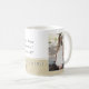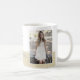 Script rustique Félicitations Graduation Photo Café Mug. Design moderne avec un message, texte de félicitations, nom de diplômé et une photo. L'arrière - plan est beige rustique. Vous pouvez modifier tout le texte et insérer la photo dans le modèle.