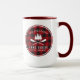 Une grande tasse à café rustique et élégante, avec votre nom et "Lake House", Cabine, Ranch ou autre texte, ainsi que sa date et son emplacement établis si désiré. Ce design personnalisé et unique présente un charmant texte rustique de style campagnard avec une silhouette blanche de pins avec des barques ou des pagaies sur un imprimé classique de plaid de buffle rouge. Idéal pour vos vacances de noël ou à tout moment de l'année. Pour voir d'autres modèles comme celui-ci, veuillez visiter ma boutique ici à "Zazzle.com/Store/Rustic_Charm". Merci .