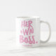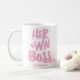 La tasse propriétaire d'entreprise est la tasse personnalisée parfaite pour une entrepreneuse moderne et mignonne. Cette tasse de patron professionnel cite les mots "sa propre patronne" et est la tasse motivationnelle parfaite pour les femmes pour commencer leur journée de travail. Répandez motivation et encouragement aux personnes autour de vous avec cette tasse de typographie parfaite avec un graphique rose clair et un cœur pour les entrepreneurs.
