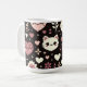 Ce kawaii chats, coeurs et motif de fleurs a une variété de mignons visages en forme de coeur sur un arrière - plan noir, orné de petites fleurs et de feuilles. La tasse est un cadeau parfait pour la Saint-Valentin ou les Anniversaires.