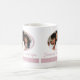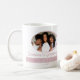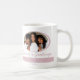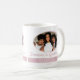 Modern Pink Season`s Greutages Script Photo Holiday Mug. Design moderne avec une photo dans un cadre ovale dans le thème rose pastel et blanc. Ajoutez votre photo et customisez le texte. Grand cadeau de vacances ou un doux souvenir de famille.