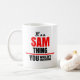 C'est une chose Sam que vous ne comprendriez pas la typographie de nom en mélange noir et rouge vif, cursive et majuscule sans-serif police.