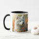 Cette jolie tasse célèbre le Chien Samoyé ! Deux côtés de la tasse ont un portrait d'un beau Samoyed blanc dans un champ de fleurs orange et blanc. En haut du centre se trouve le script qui dit Samoyed, mais vous pouvez le changer ou même le personnaliser, si vous le souhaitez. Cette tasse sera remarquée !