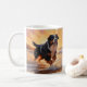 Mug Sandy Paws Bernese Mountain Dog on Beach Sunset